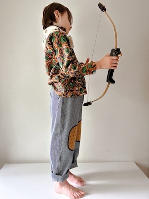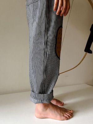 【Last2】Home Brand / Railroad stripe with floral knee patch Mountain Pant