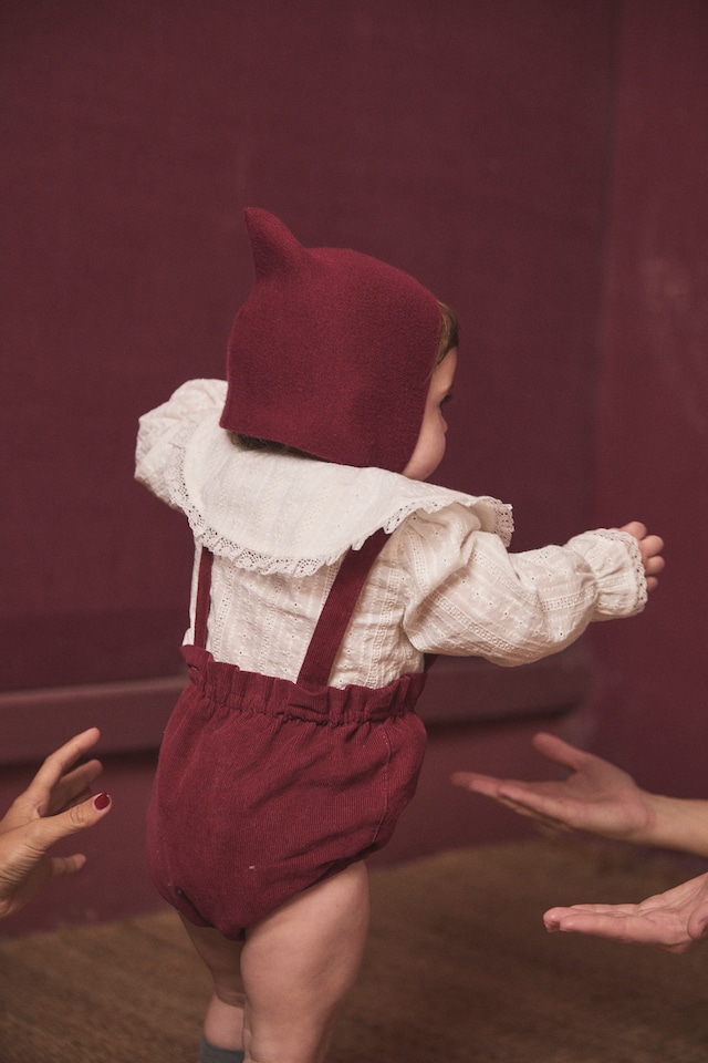 Burgundy corduroy straps bloomerとの相性もぴったり。