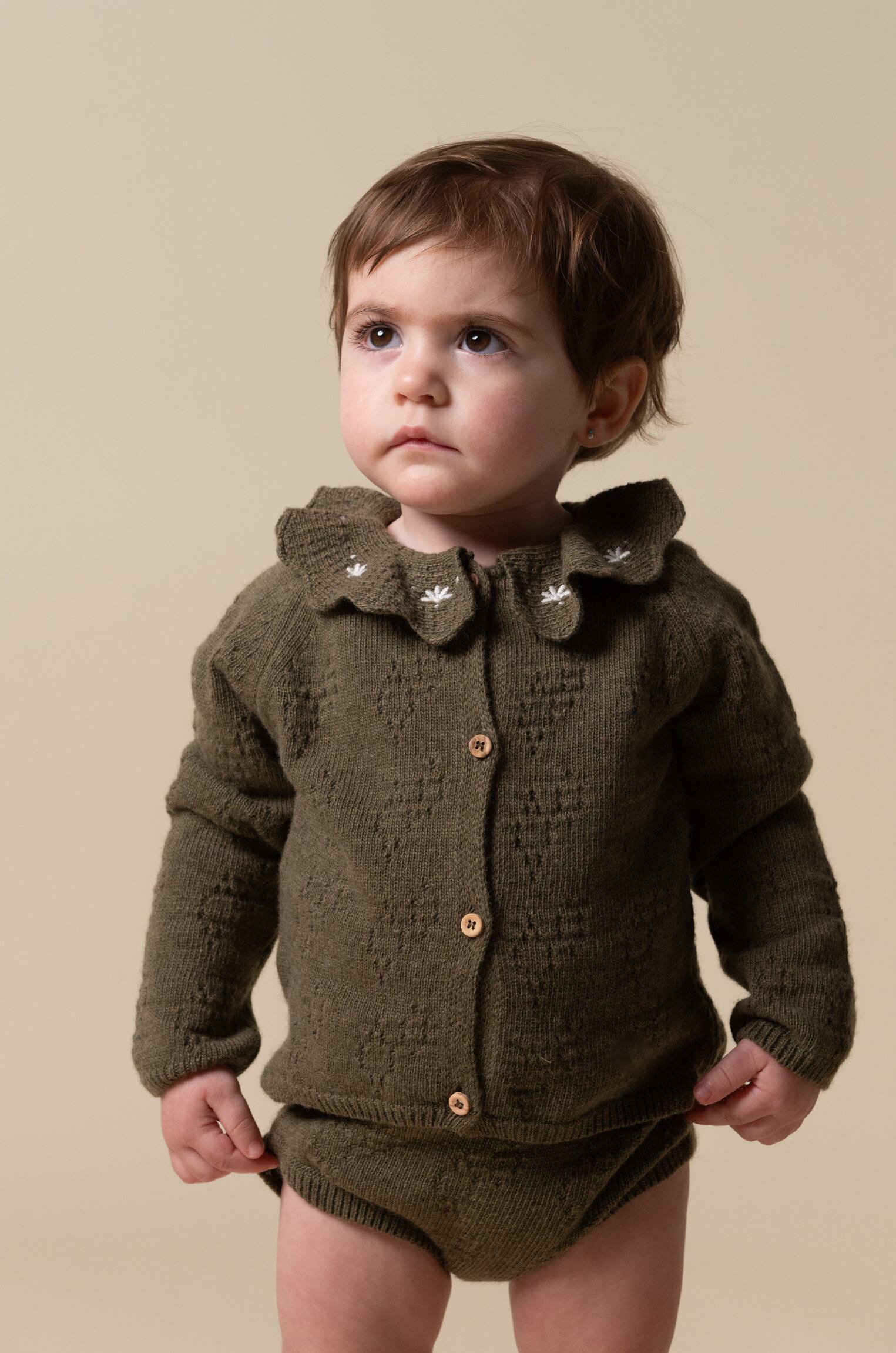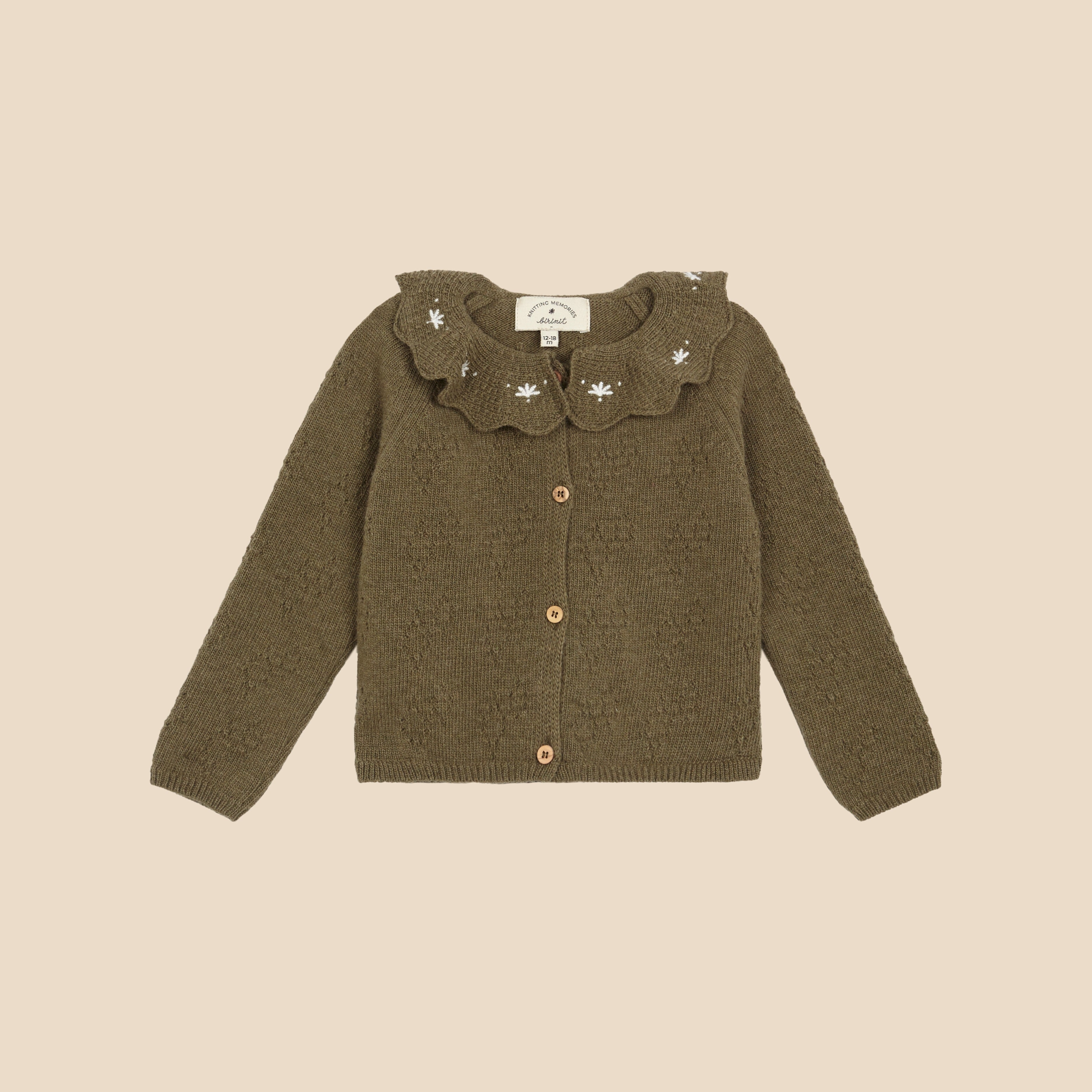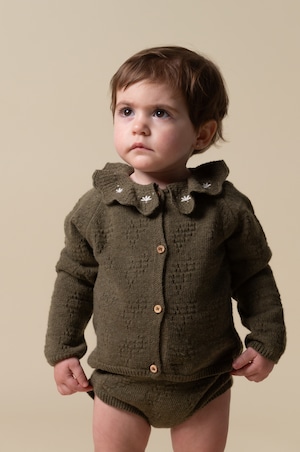 Birinit Petit / Green knit embroidered cardigan baby