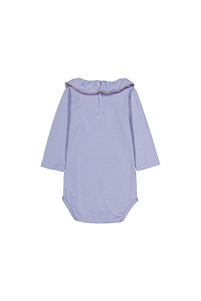 シンプルでありながら、美しいラベンダーカラーと襟元が可愛らしいデザイン。