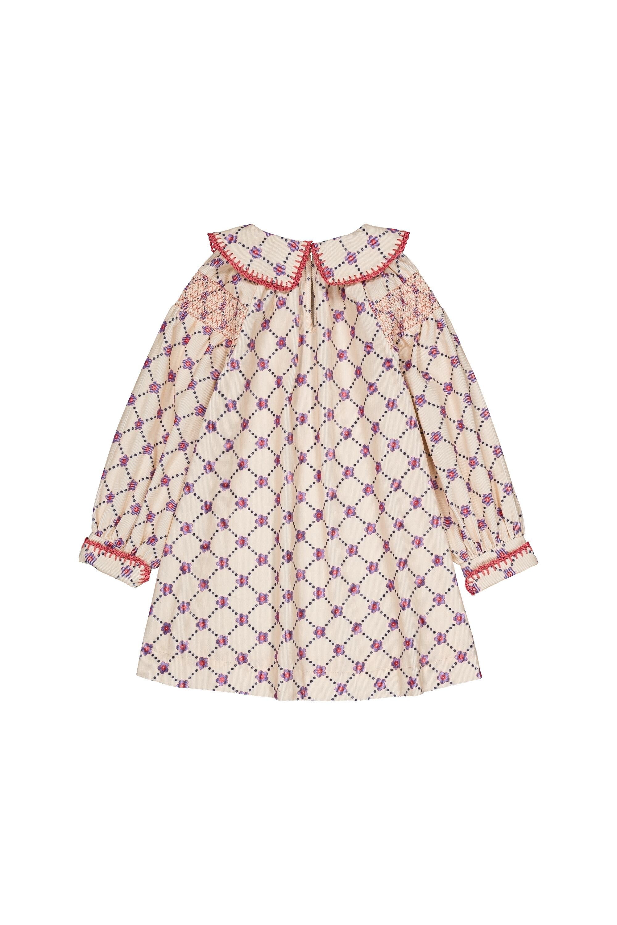 薄手のコーデュロイ素材のお花柄のショートドレス。