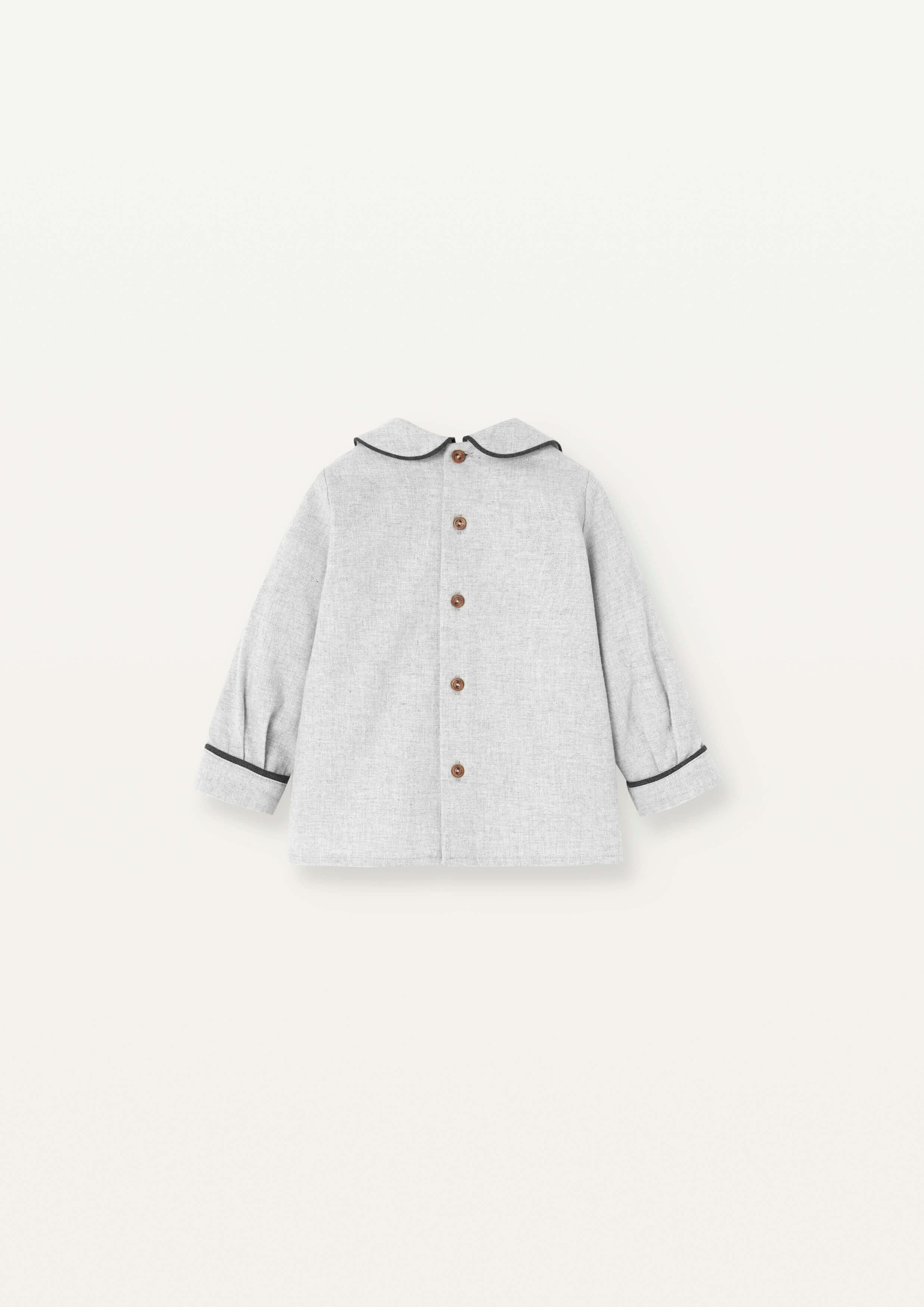 popelin / Mod.28.3 Grey melange panelled shirt with baby collar