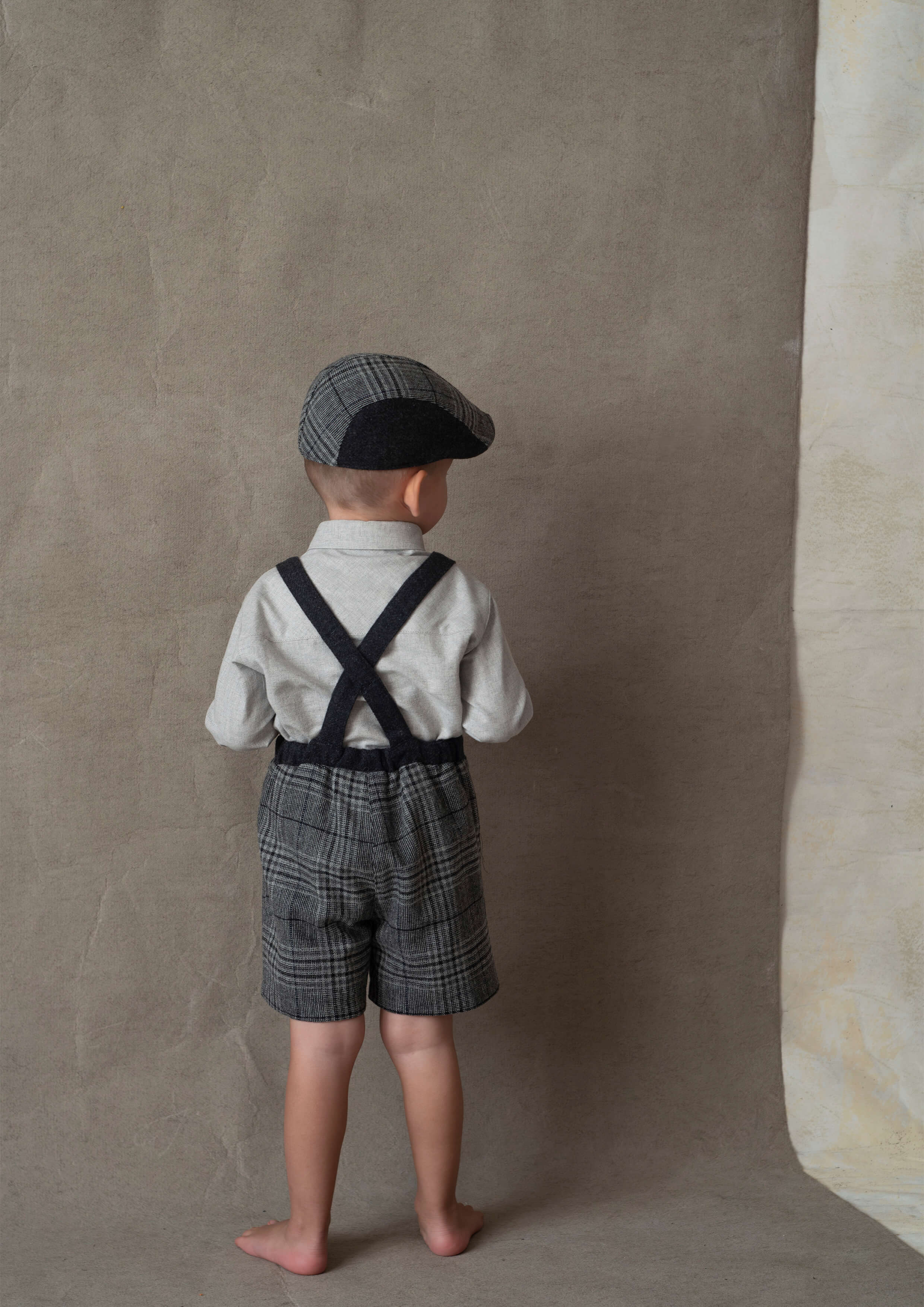 popelin / Mod.8.3 Grey plaid woollen short with crossover straps