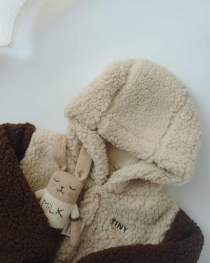 TINY COTTONS / Color Block Polar Sherpa Hoodie - dark vanilla