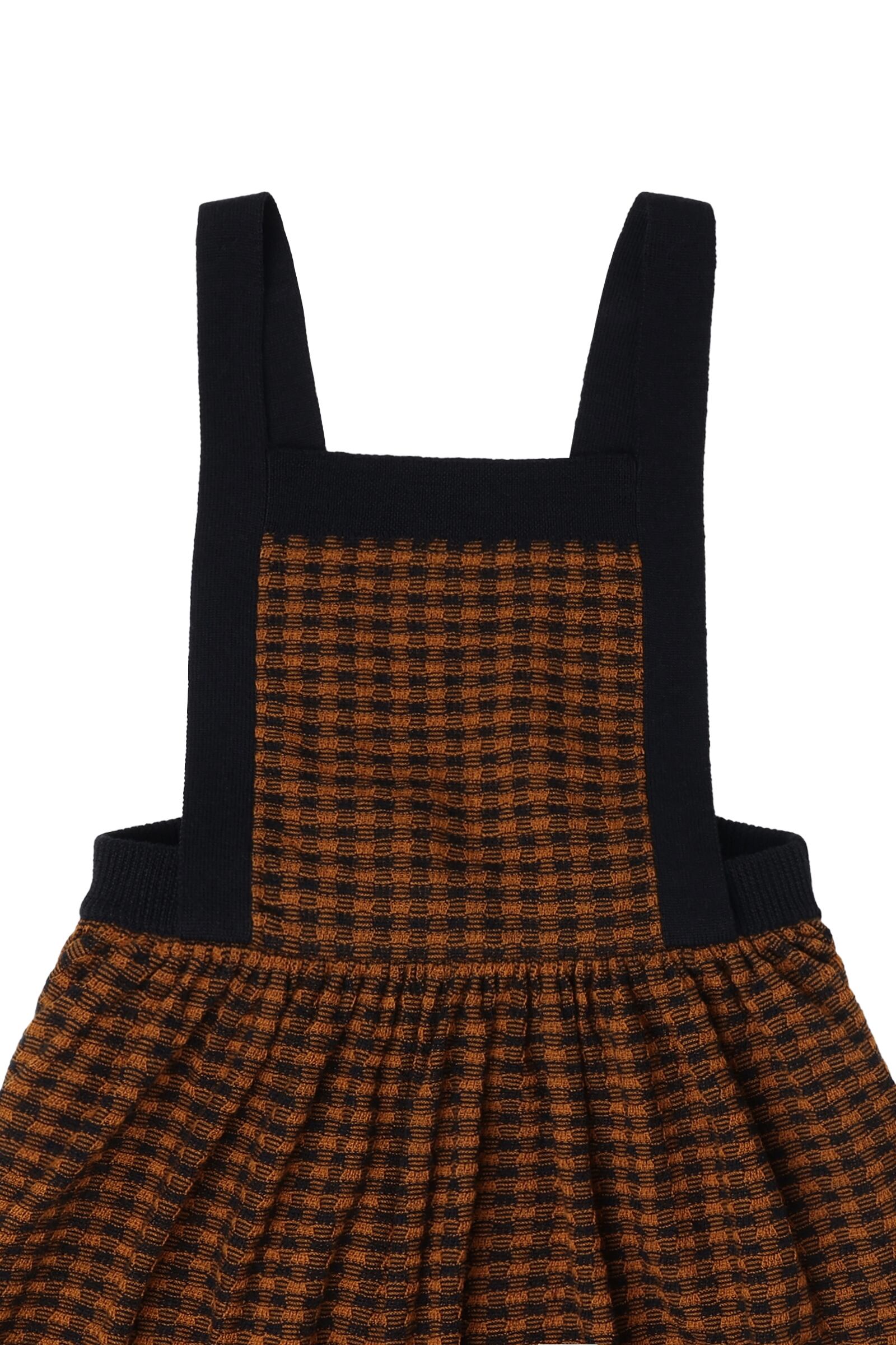 ウエストはゴム入りで、調節可能なサスペンダー付き。背中はボタン留め仕様。