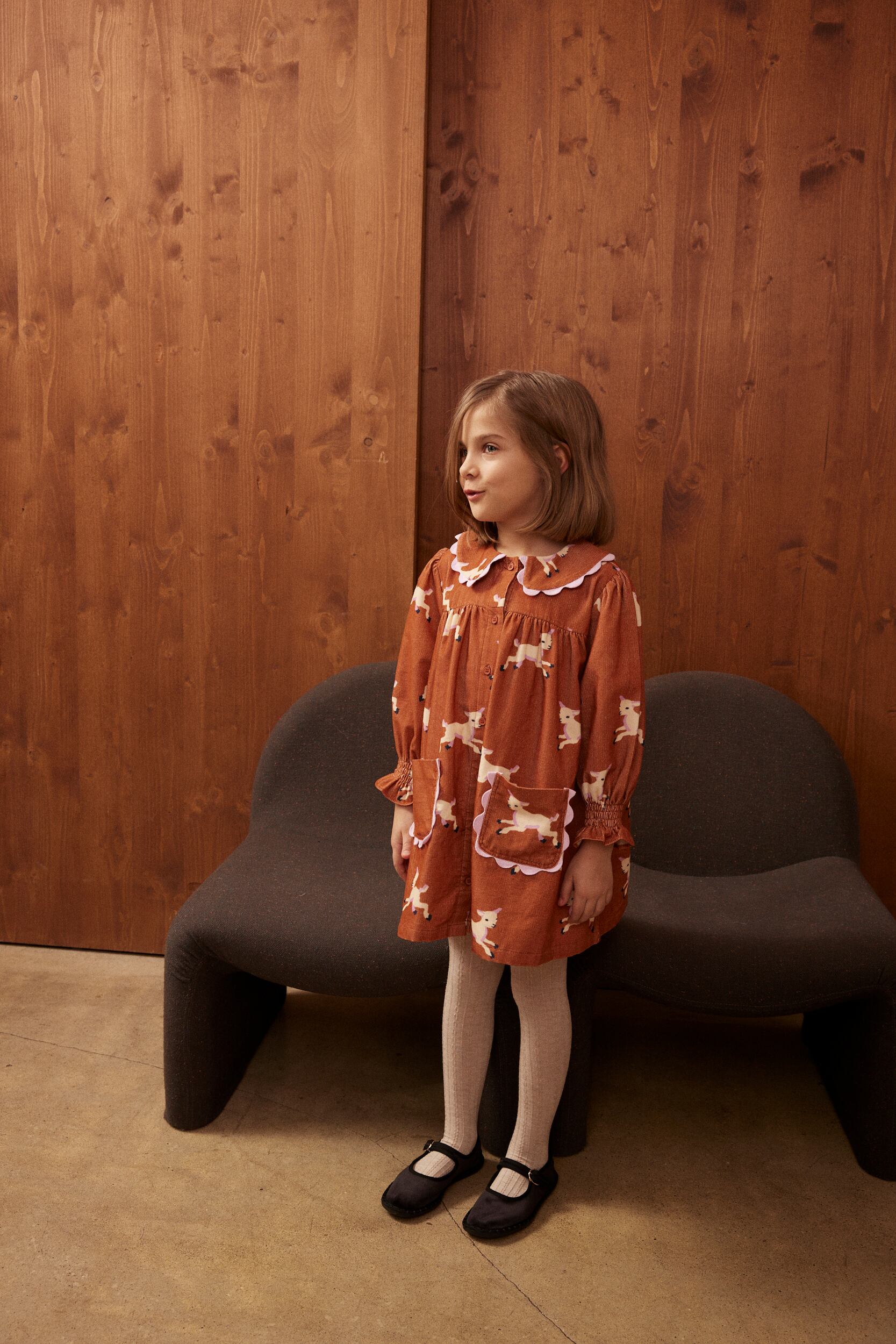 薄手の柔らかいコーデュロイ素材で、ふんわりシルエットのワンピース。