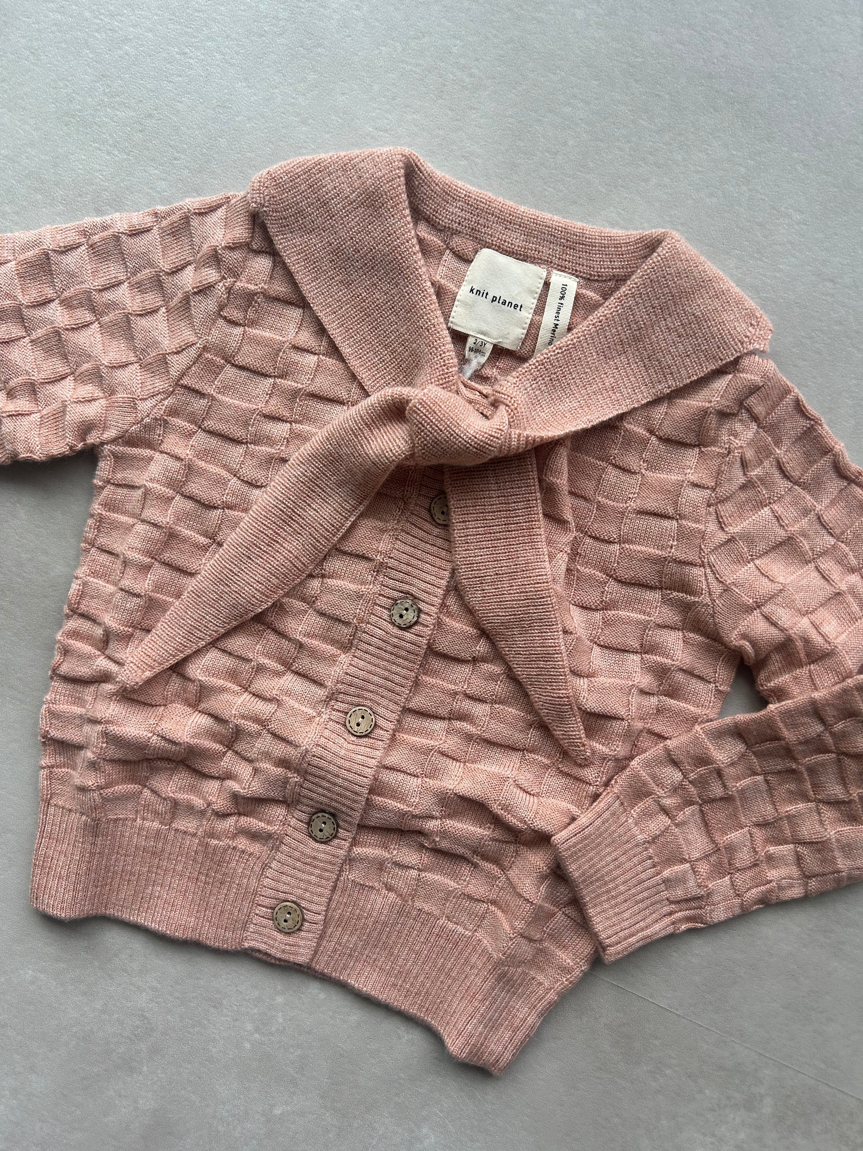チェッカーボード柄がニットウェアコレクションに遊び心を添えています。