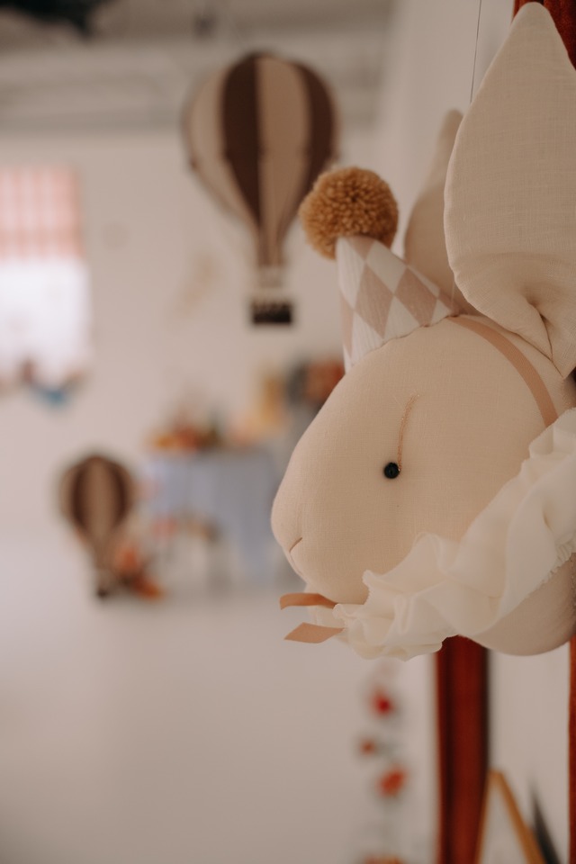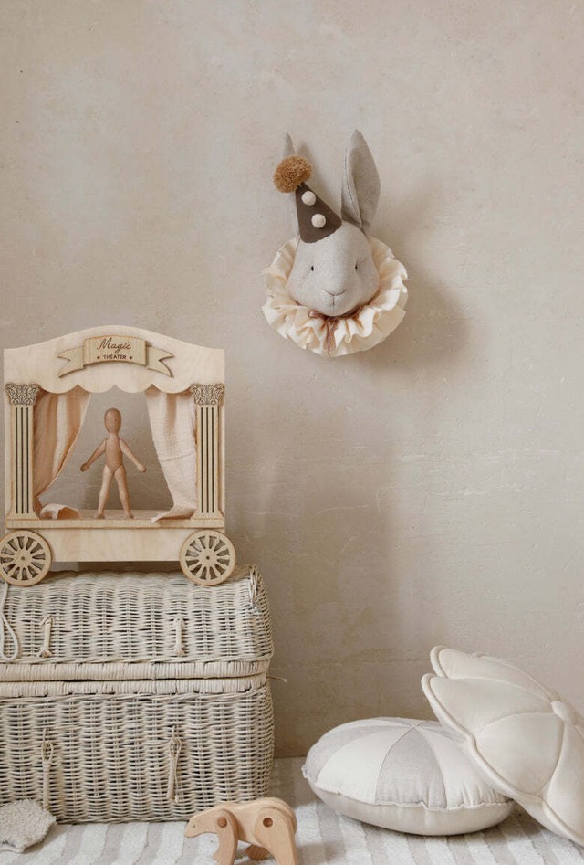サーカス姿のうさぎモチーフのデコレーションアイテム。