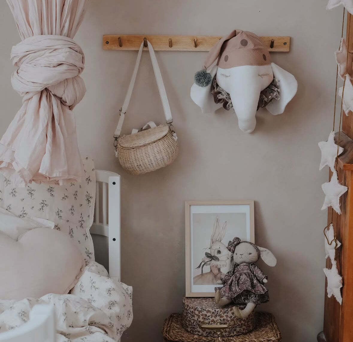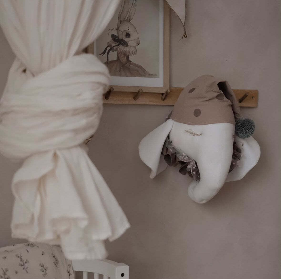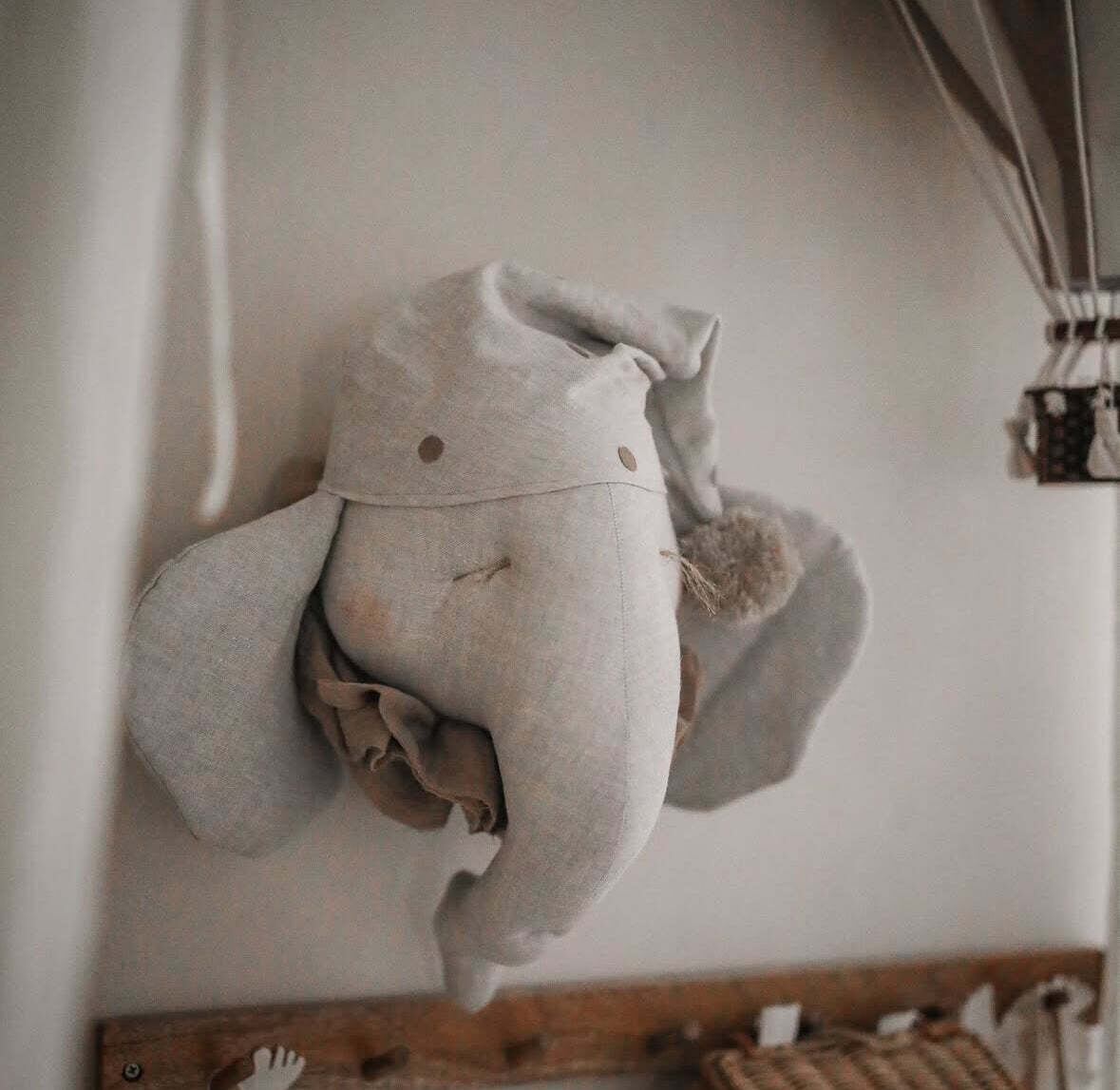 ナイトキャップを被ったぞうさんのモチーフのデコレーションアイテム。