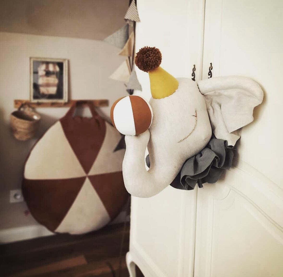 サーカス姿のぞうさんモチーフのデコレーションアイテム。