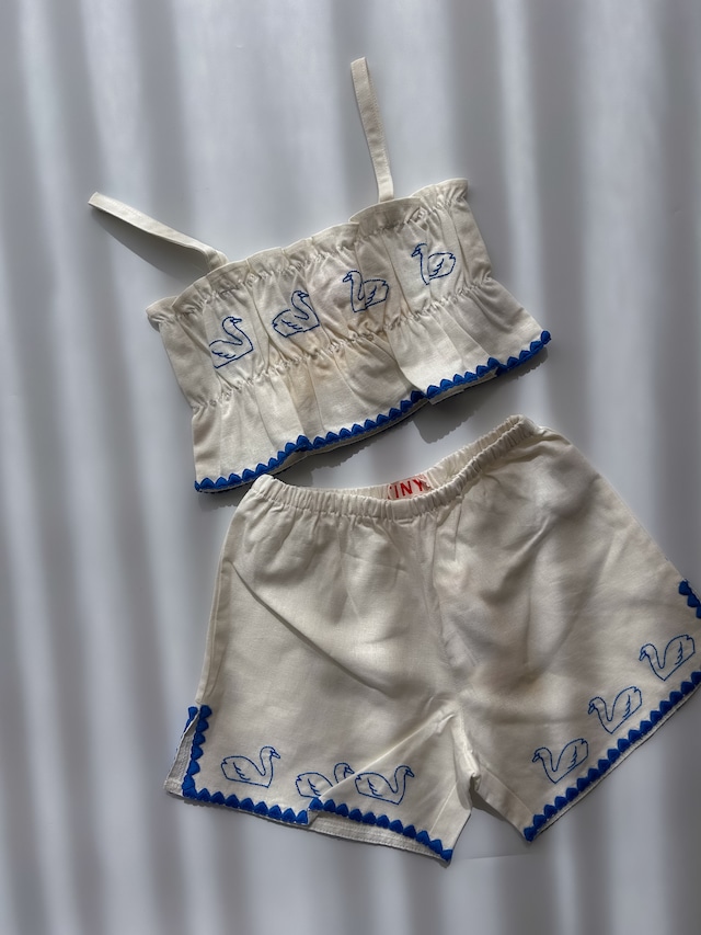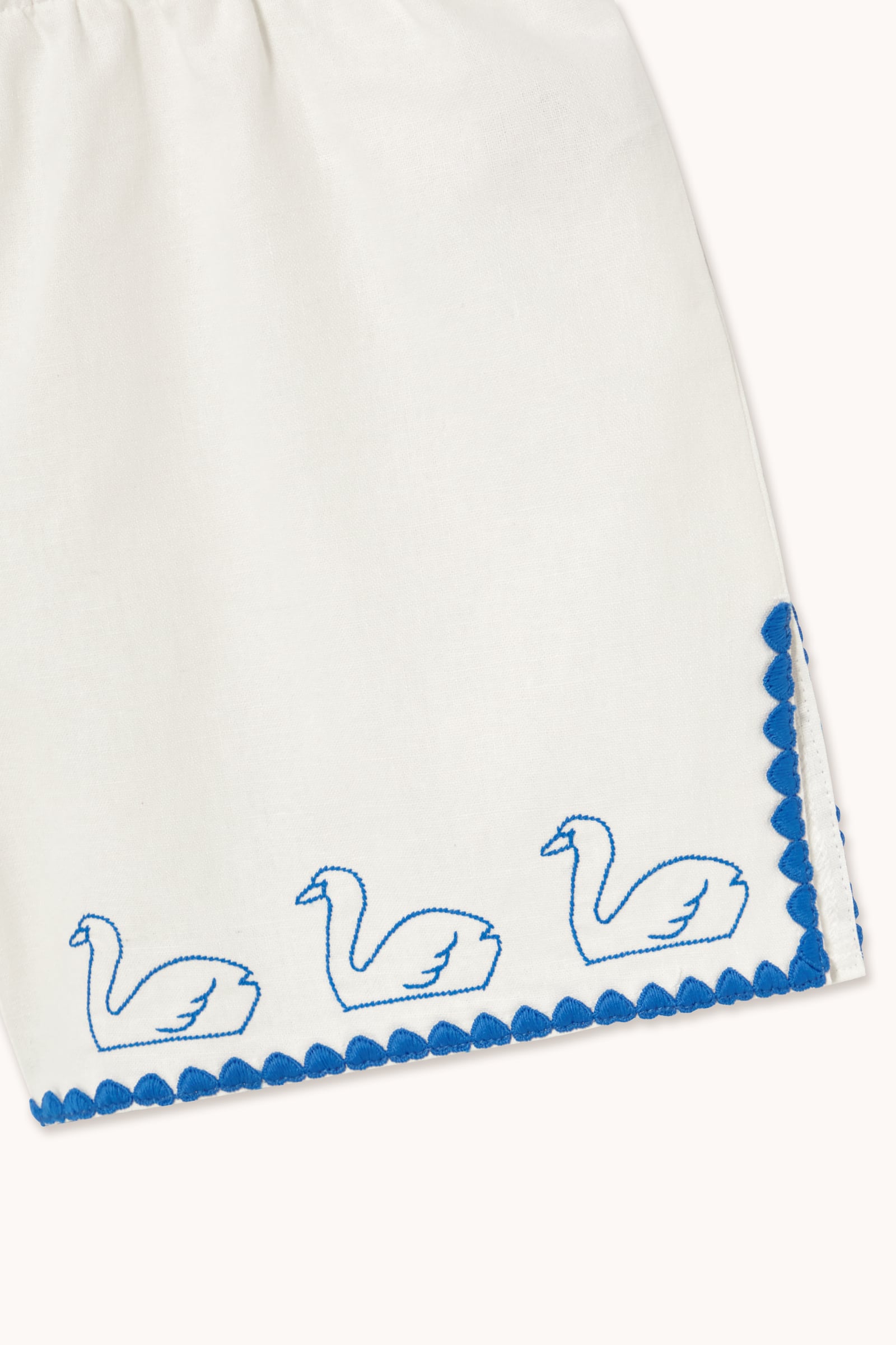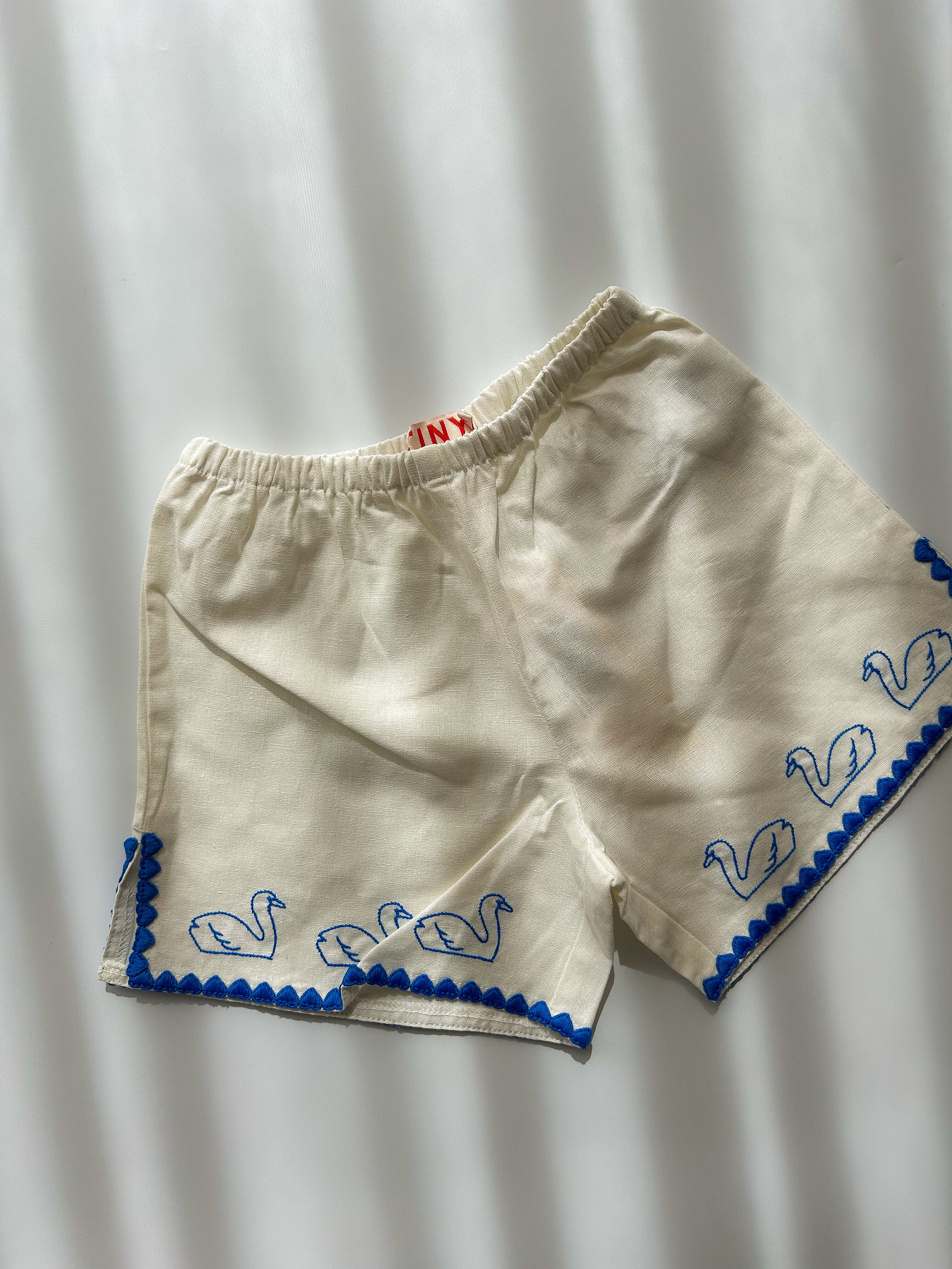 スワンモチーフの刺繍が美しいショートパンツ。