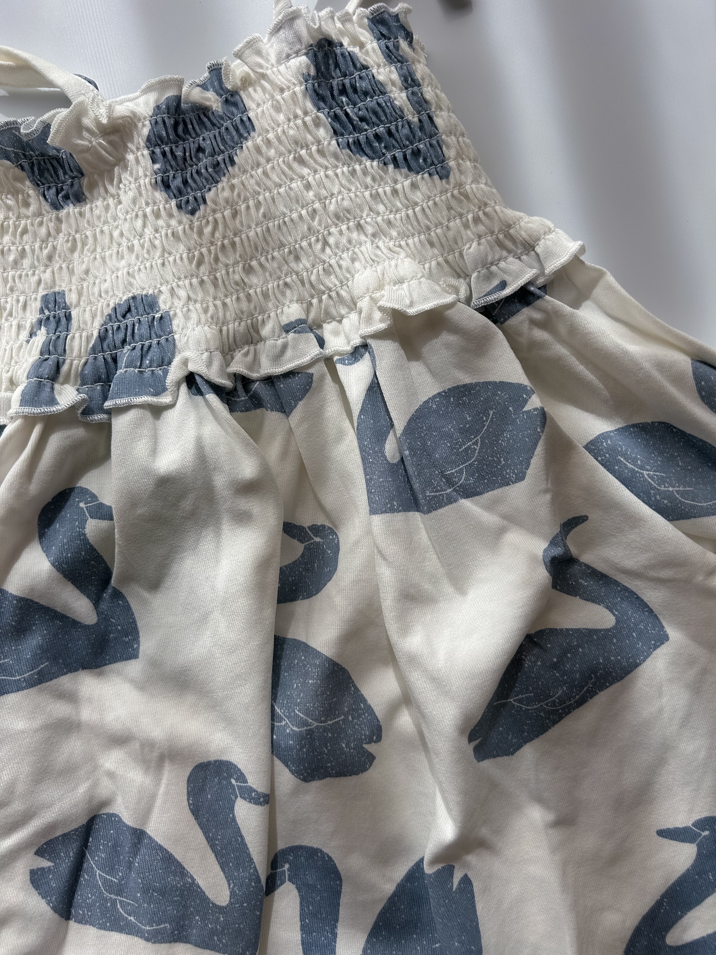 かすれプリントのスワン柄がとても上品で可愛らしいワンピース。