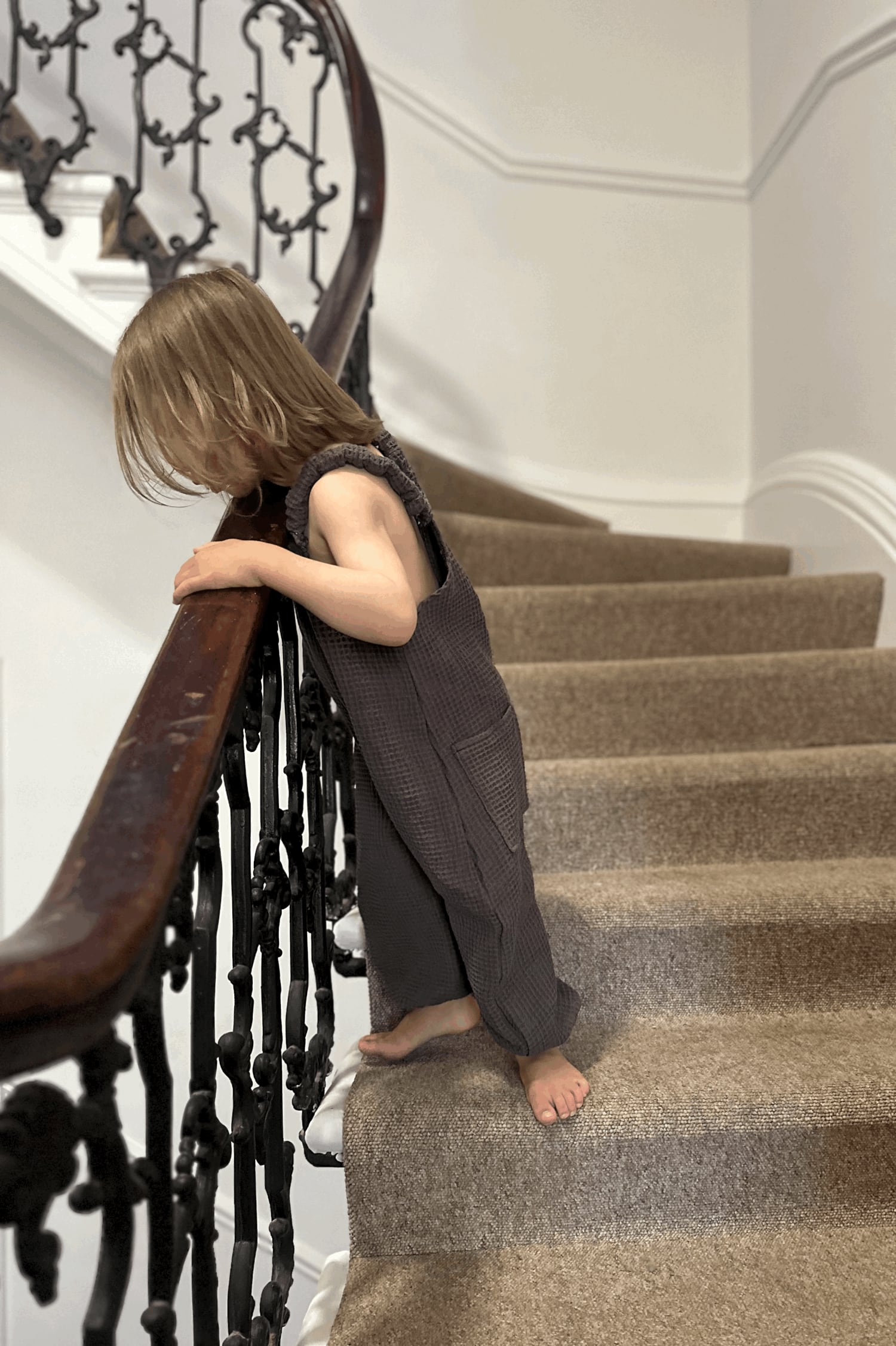 【予約】House of Dungarees / Organic Pullover Dungarees - Waffle - Charcoal
