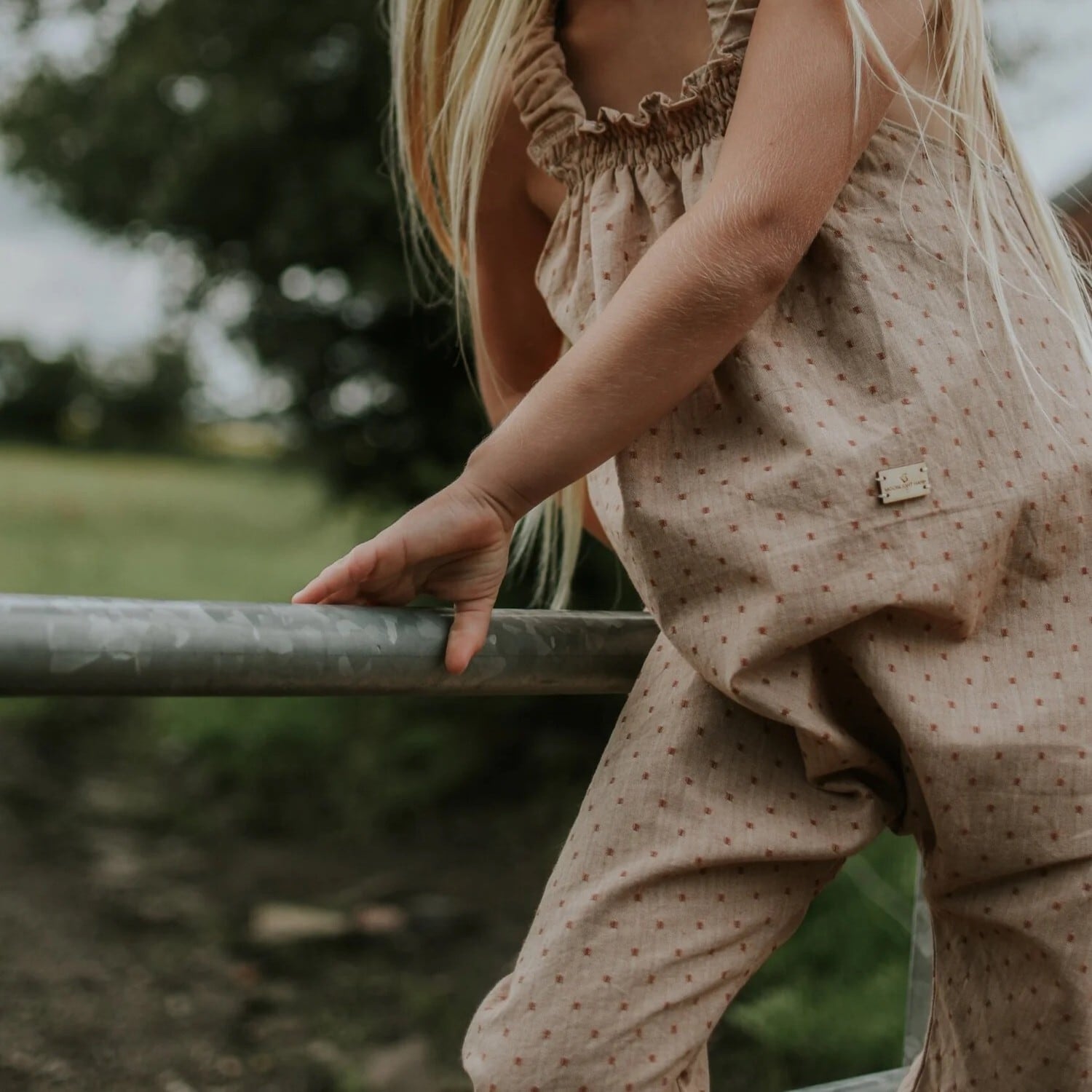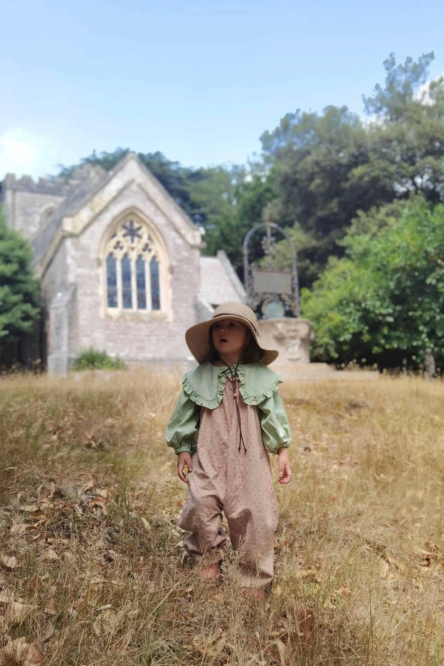 【予約】House of Dungarees / Organic Cotton Pullover Dungaree - Dotty Peach