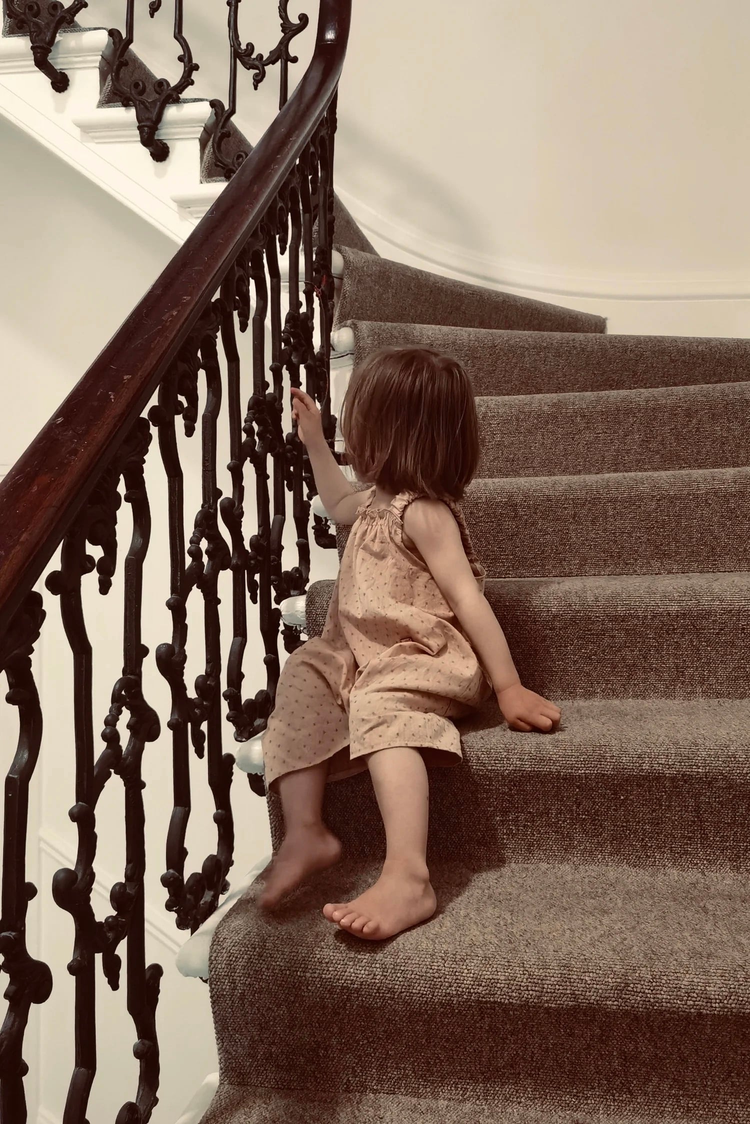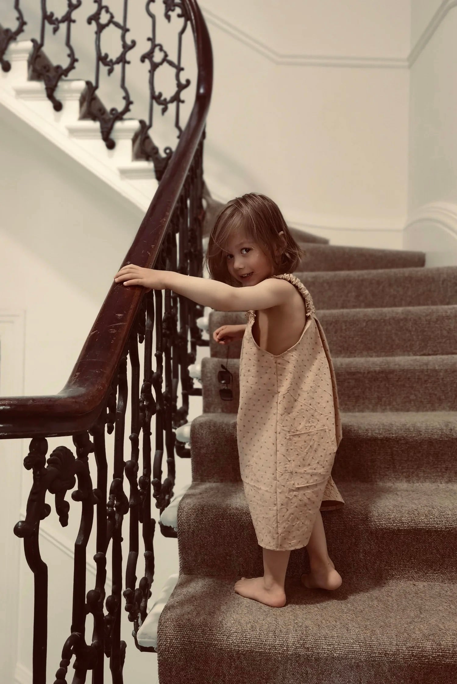 【予約】House of Dungarees / Organic Pullover Short Dungarees - Dotty Peach