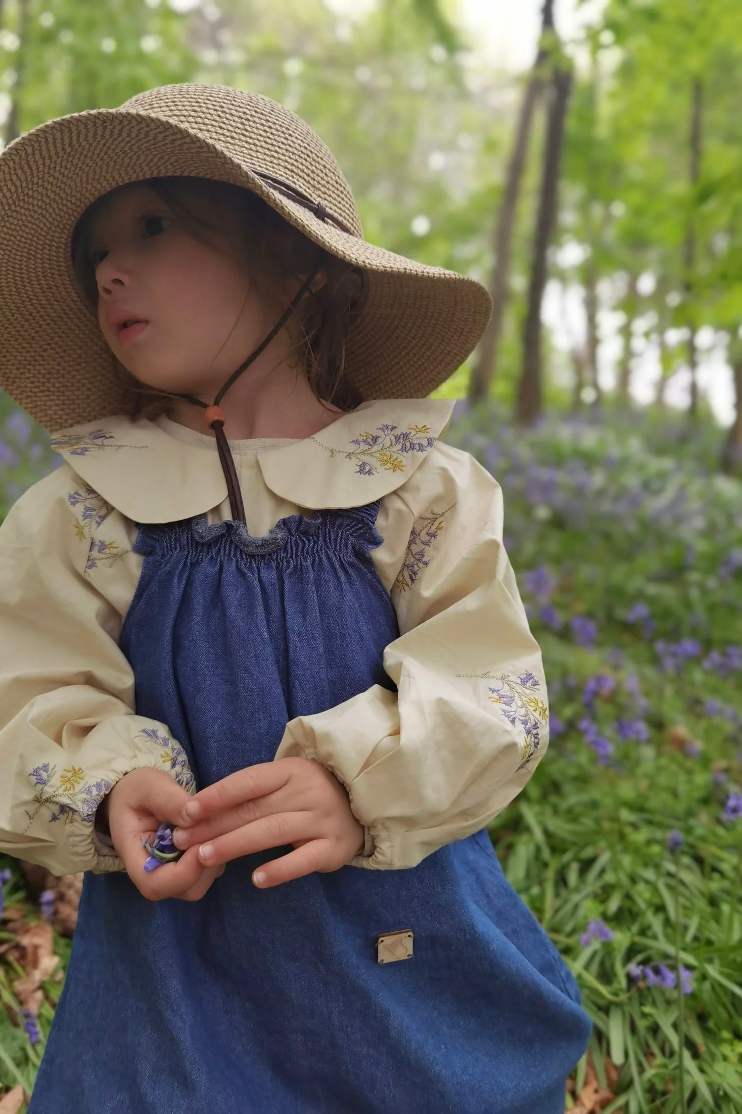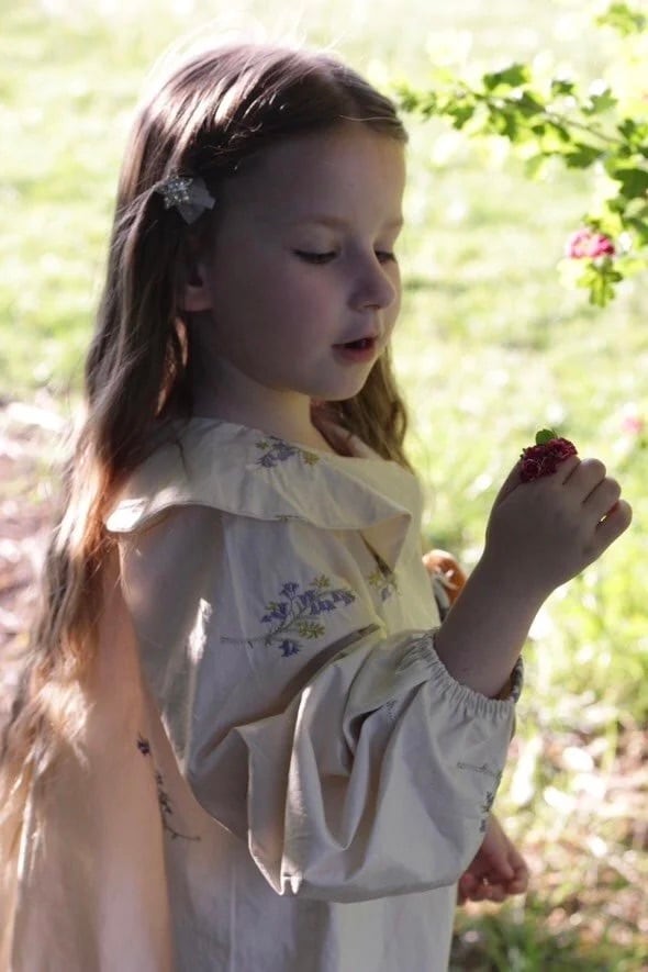 【予約】House of Dungarees / Organic Cotton Peter Pan Collar Dress - Embroidered Bluebells
