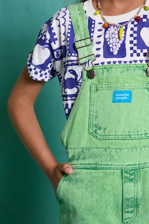 幼い頃にオーバーオールを着て過ごした日々の記憶から着想を得て、ヴィンテージ風のオーバーオールをブランドの象徴アイテムとして展開しています。