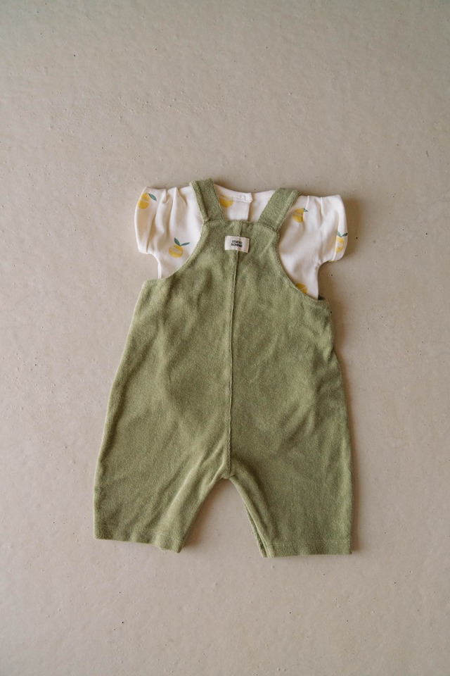 100%オーガニックテリーコットン製のオーバーオール。