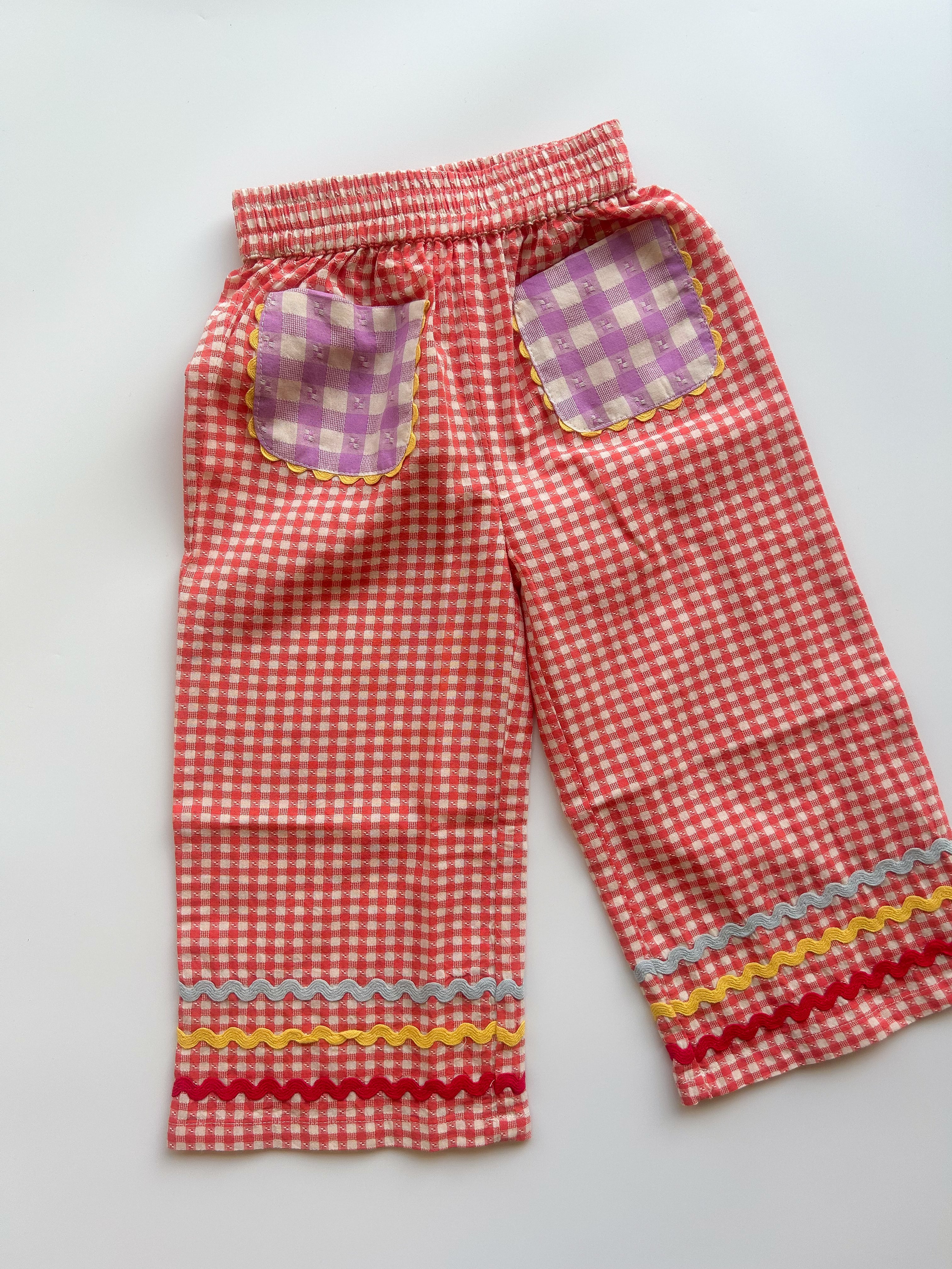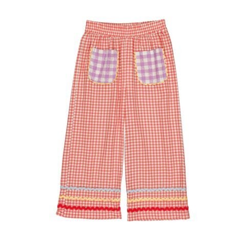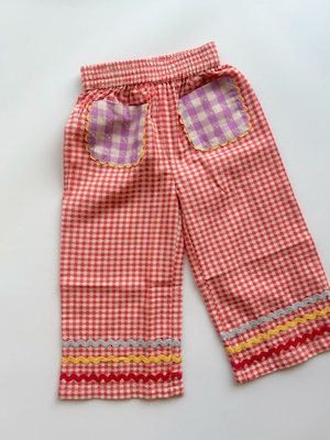裾には3カラーのリックラックテープが施された個性的で可愛らしいパンツ。