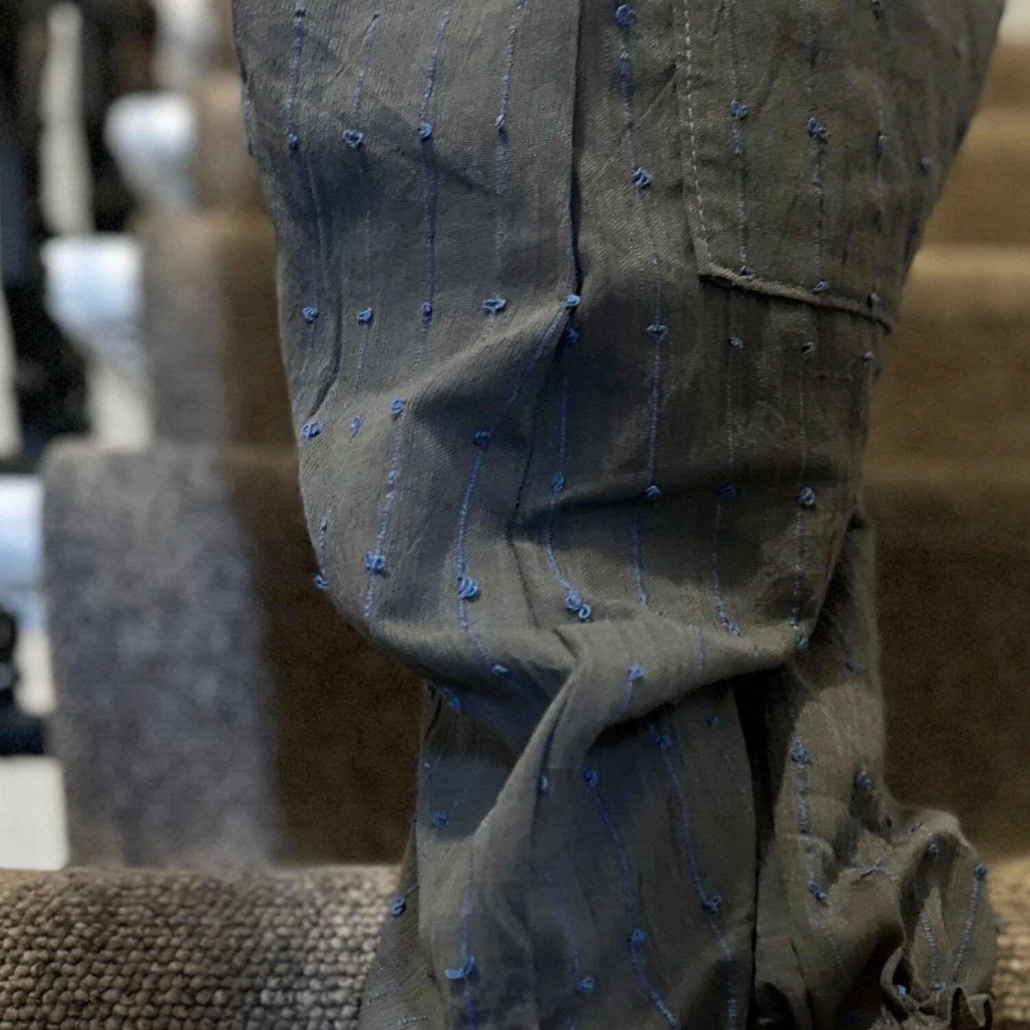 スラブコットン生地を使用し、くすみカラーの生地に繊細なループ模様が織り込まれています。
