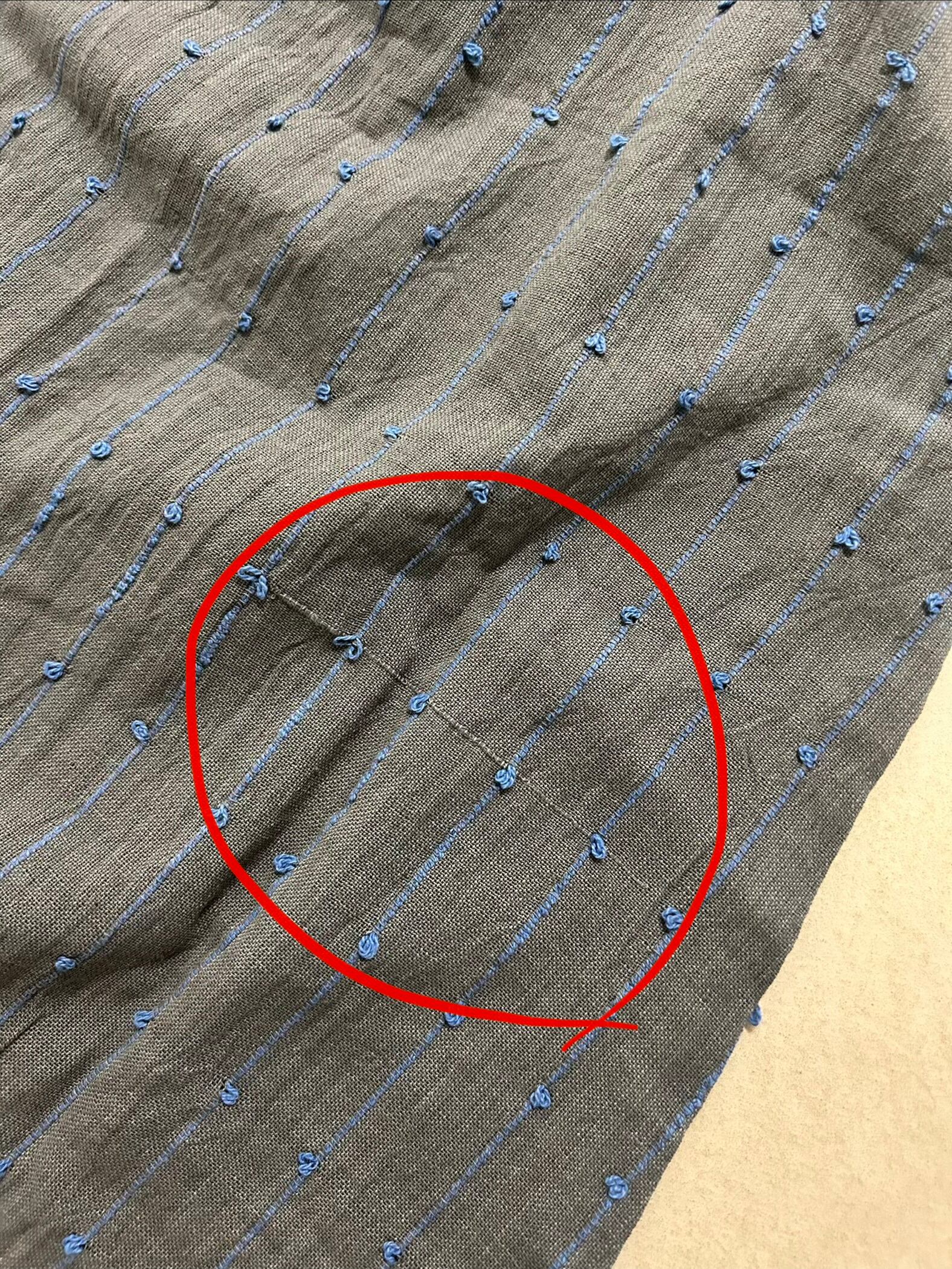 後ろ側の腰の位置に横線が入っております。(写真3~4枚目参照)