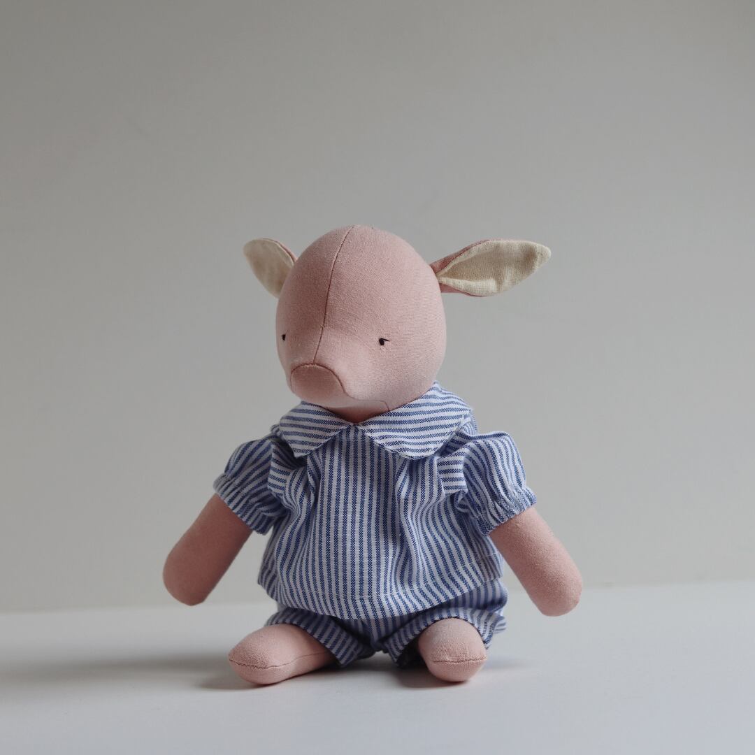 【Last2】QUBASHI / Little Pig ( Blue Stripes Outfit )